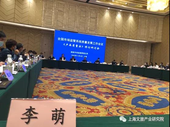 文旅说:2020年11月4日至5日,全国市场监管系统质量发展工作会议在上海召开,会议就《产品质量法》修订草案、《质量强国建设纲要》编制及2021年质量发展工作思路展开了研讨。国家市场监管总局副局长田世宏出席会议并讲话,市场监管总局质量发展局局长黄国梁主持会议。中国社会科学院—上海市人民政府上海研究院李萌研究员应邀参加了《产品质量法》修订研讨会,对修订工作提出意见和建议。