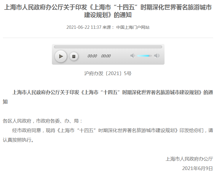 文旅说:时值“十四五”新起点,上海文旅产业也将迎来新机遇和新变革。6月22日,上海市政府官网发布了《上海市“十四五”时期深化世界著名旅游城市建设规划》(下称《规划》)。近期,李萌研究员在接受《华夏时报》记者采访时表示,本次上海发布的旅游业“新12条”支持措施,对于支持旅游企业稳步复苏、提高旅游企业发展能力、培育旅游产业新动能、形成新环境下旅游业新优势,都将具有直接的促进作用。政策举措针对现阶段上海旅游企业需求和十四五深化建设世界著名旅游城市任务,从金融、税收、项目、品牌、技术、市场、人才等多个方面多个环节,做了精准设计。