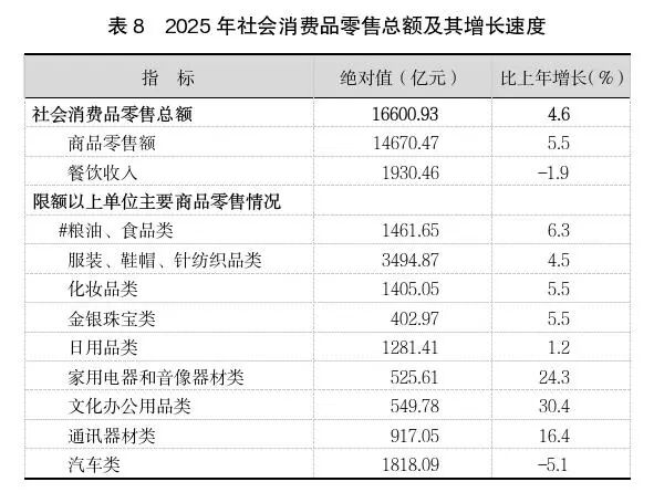 2025年社会消费品零售总额及其增长速度图源:上海统计局