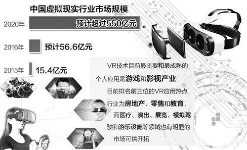 今年是VR产业元年。艾媒咨询数据显示,2015年中国虚拟现实行业市场规模为15.4亿元,预计今年将达到56.6亿元,到2020年国内市场规模将超过550亿元。毫无疑问,VR正处于产业爆发的前夕,即将进入持续高速发展的窗口期。
