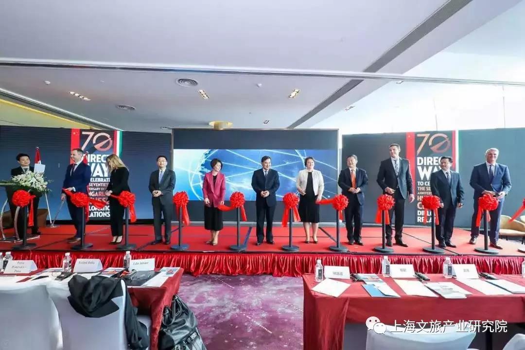 会上,上海市政协副主席徐逸波和市商务委副主任杨朝、虹口区副区长袁泉、匈牙利国家金融服务和公共事业部国务秘书爱迪特·约哈斯(Edit Juhász)、匈牙利外交与对外经济部副国务秘书佩特拉·帕娜·博纳瓦奇(Petra Pana-Ponevács)、匈牙利驻沪总领事博岚(Szilárd Bolla)等共同为上海-布达佩斯直航开通剪彩。